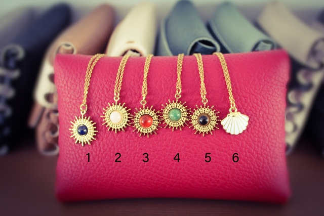 1 collier en acier inoxydable plaqué or – Design élégant et intemporel – Résistant à l'eau et hypoallergénique – Couleur au choix : blanc, bleu, vert, rouge, marron/noir, coquille