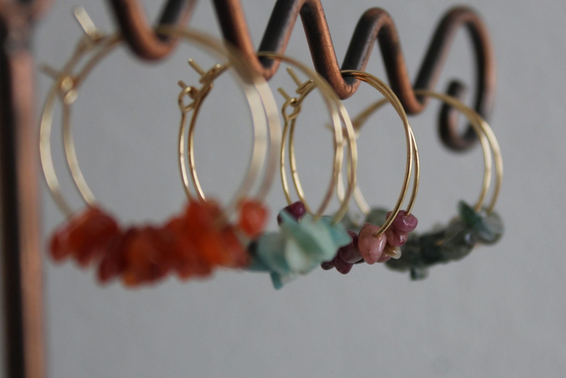 Créoles en Plaqué Or 18K et Pierres Semi-Précieuses